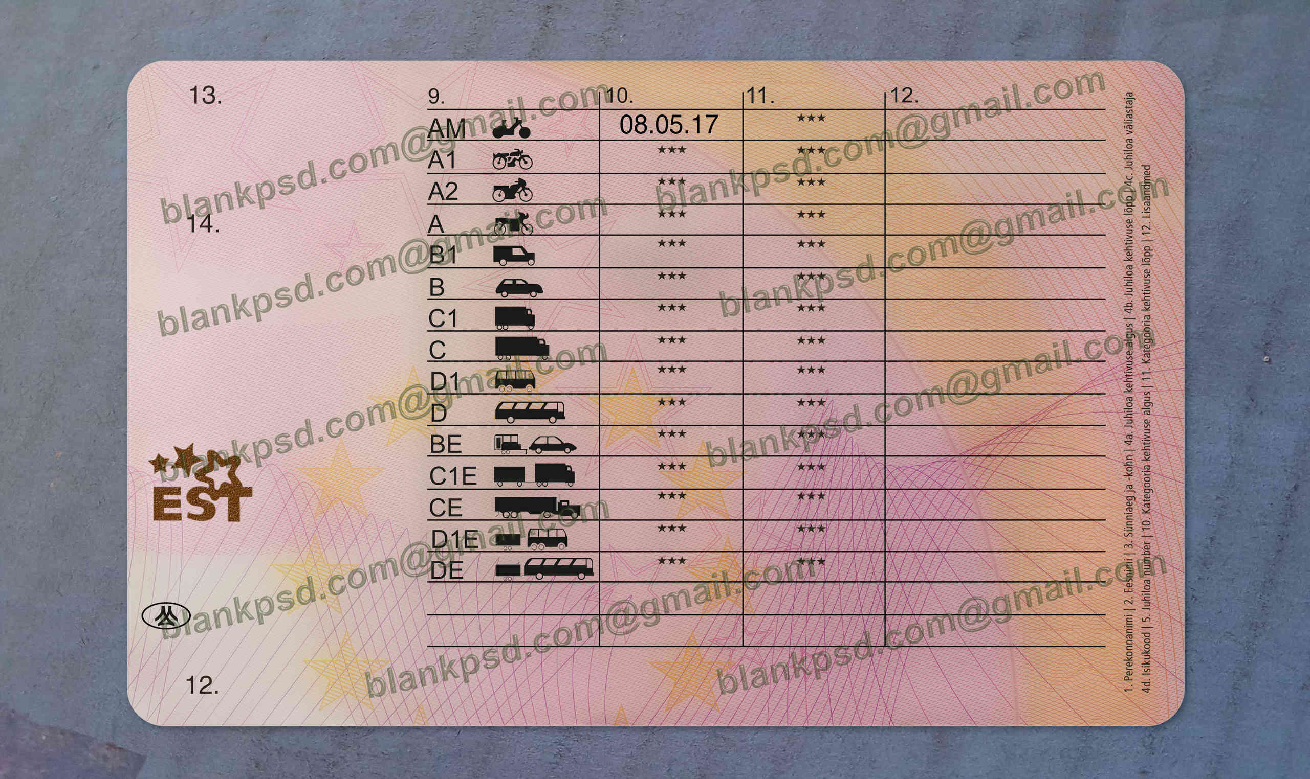 Estonia Drivers License Template