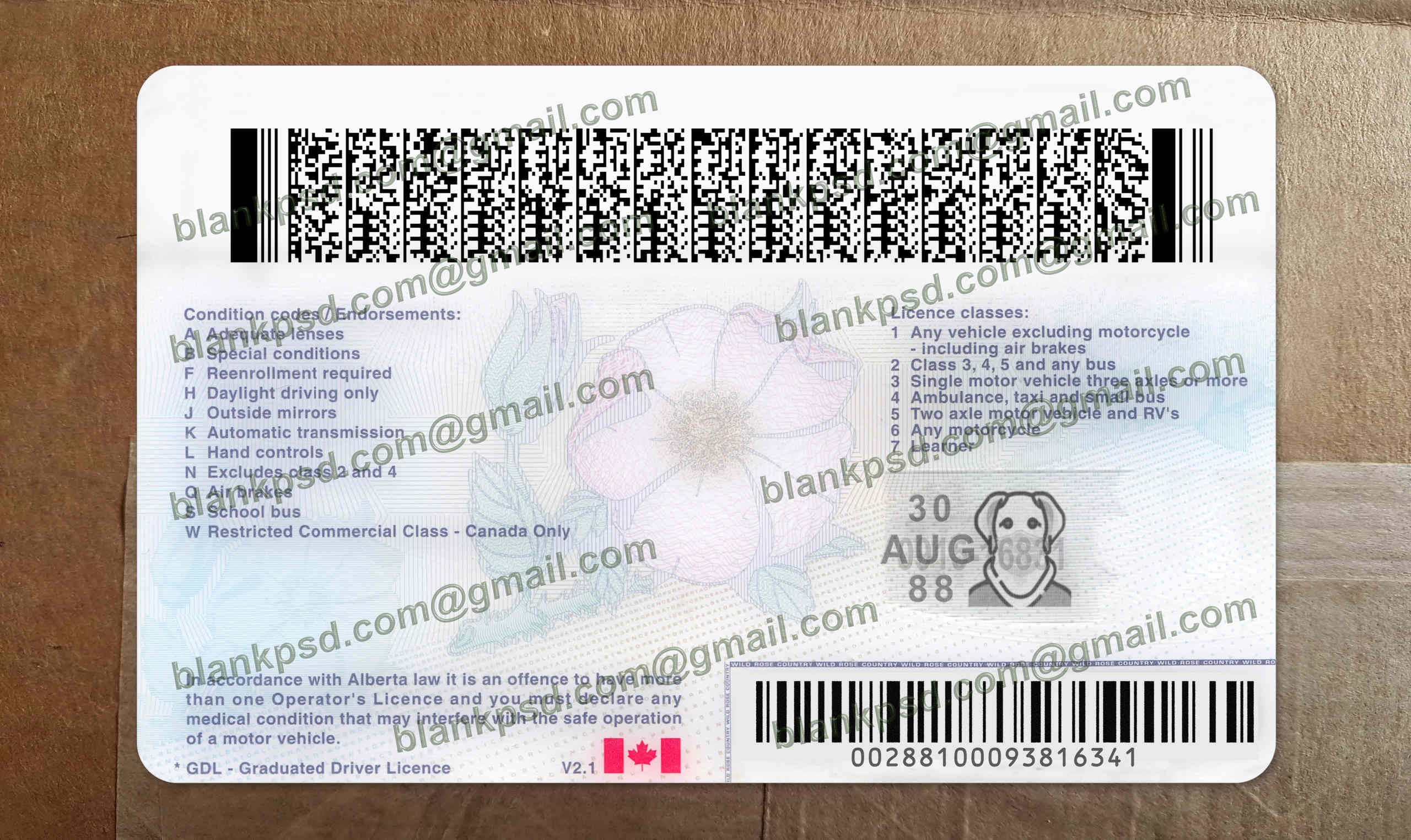 Fake Alberta Drivers License V1 fully editable photoshop template
