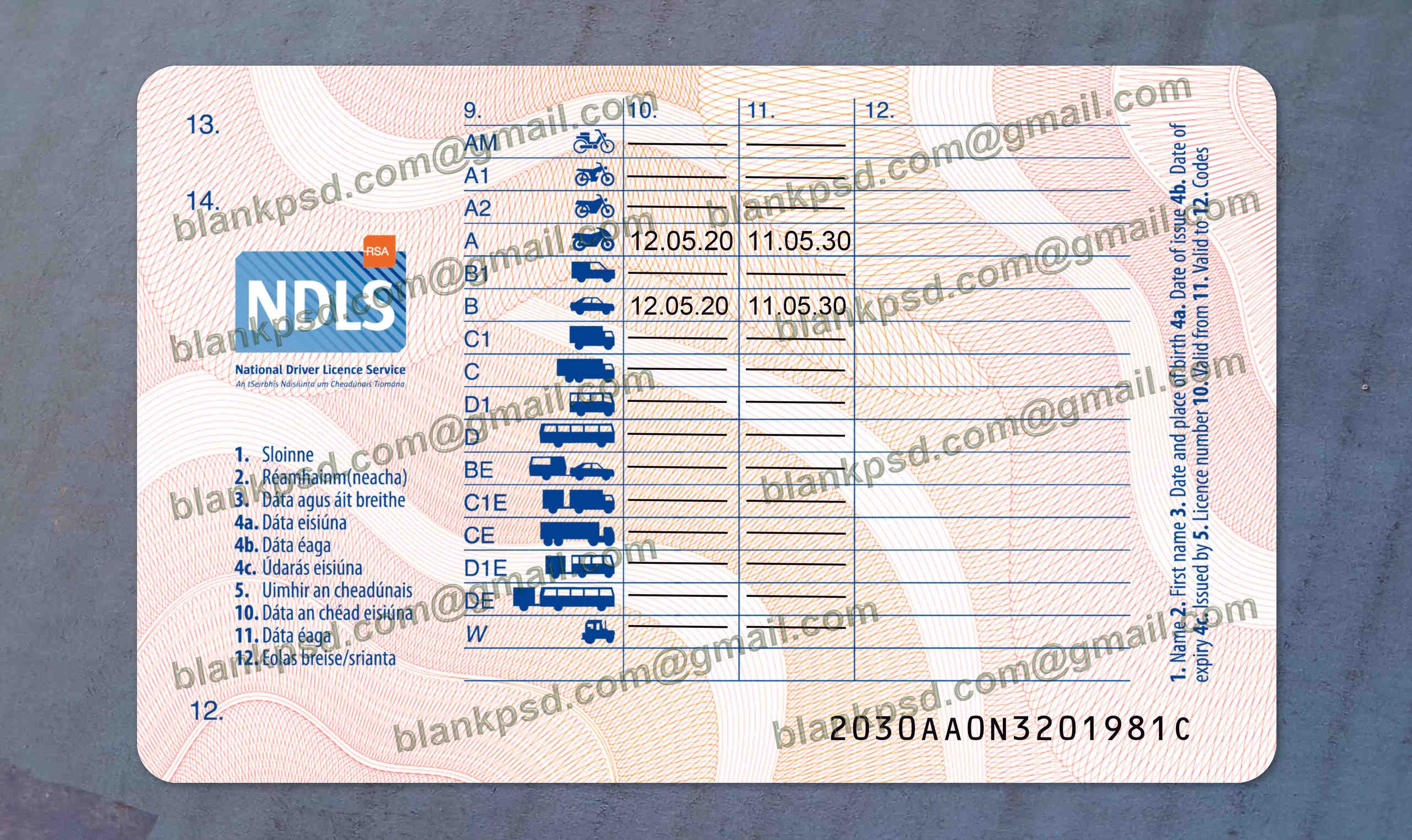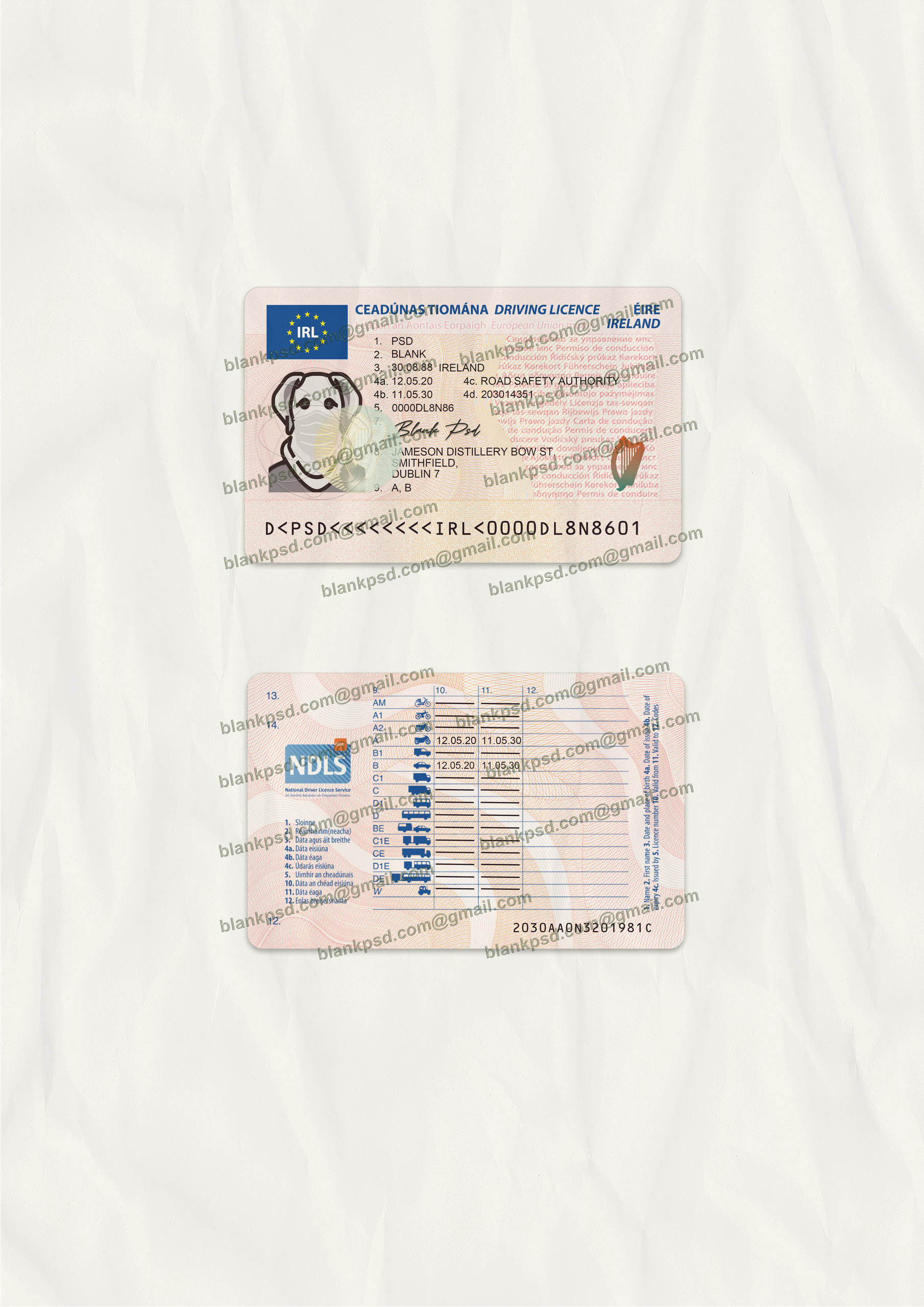 You can edit Blank Ireland Driver License and put any : name, address, Id number, expire date, barcode, date of birth, height, weight, expire date, change photos..etc.