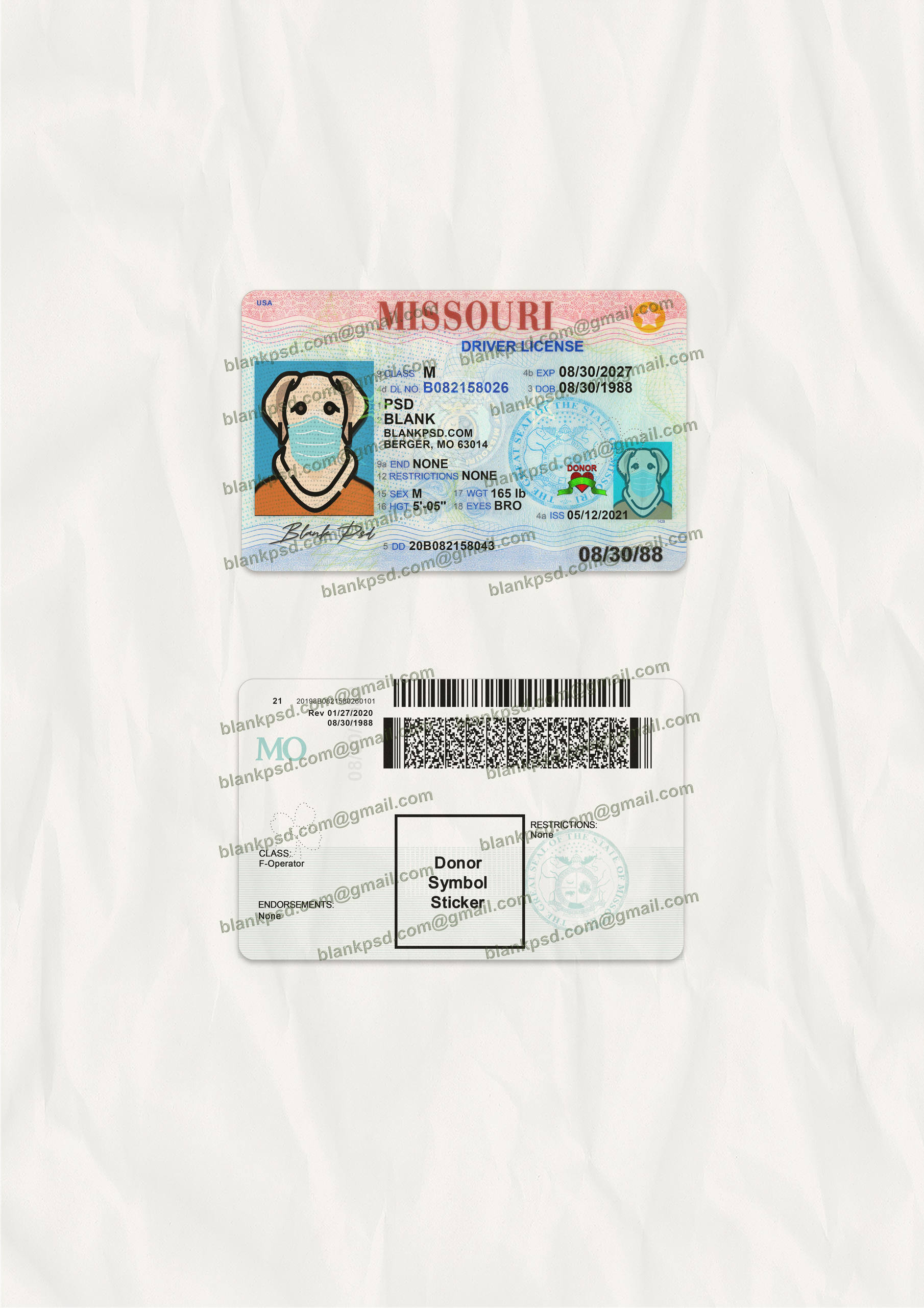 Fake Missouri Drivers License Template New V2 fully editable photoshop template