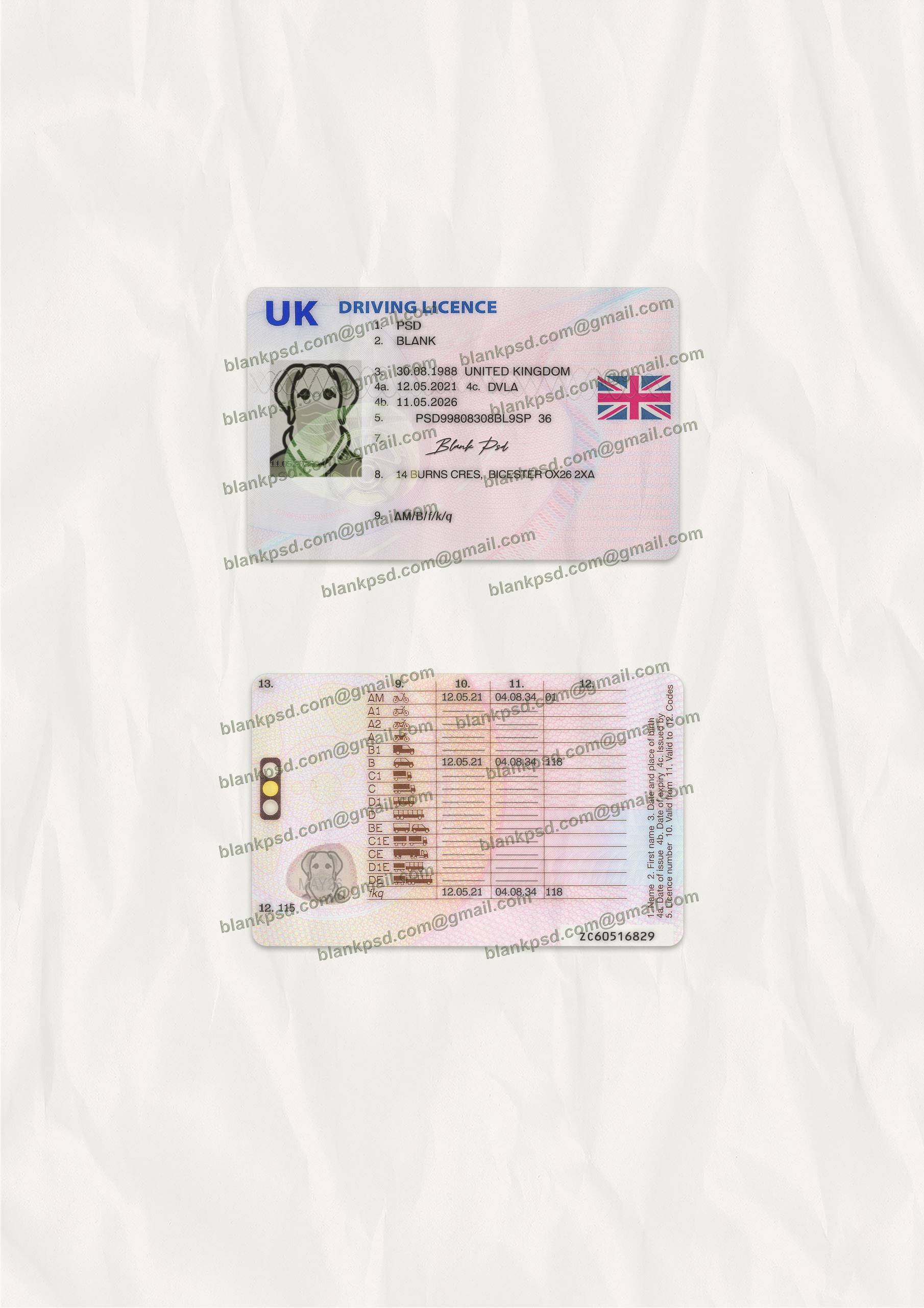 You can edit United Kingdom Driving Licence Psd and put any : name, address, Id number, expire date, barcode, date of birth, height, weight, expire date, change photos..etc.