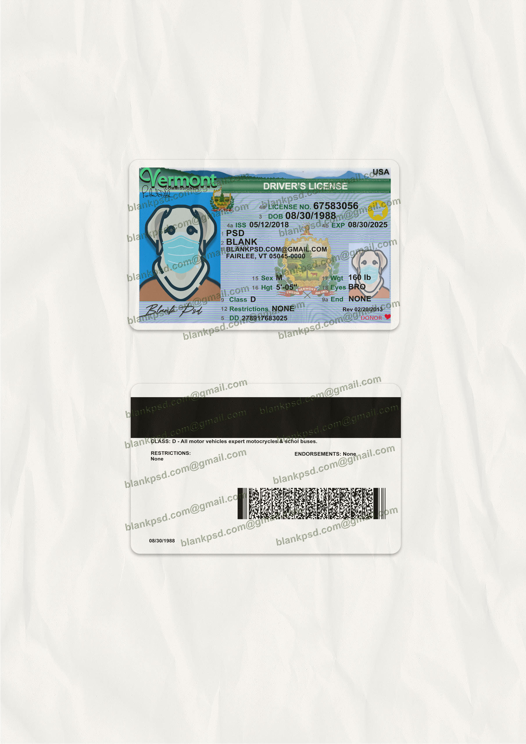 Fake Vermont Drivers License V1 fully editable photoshop template