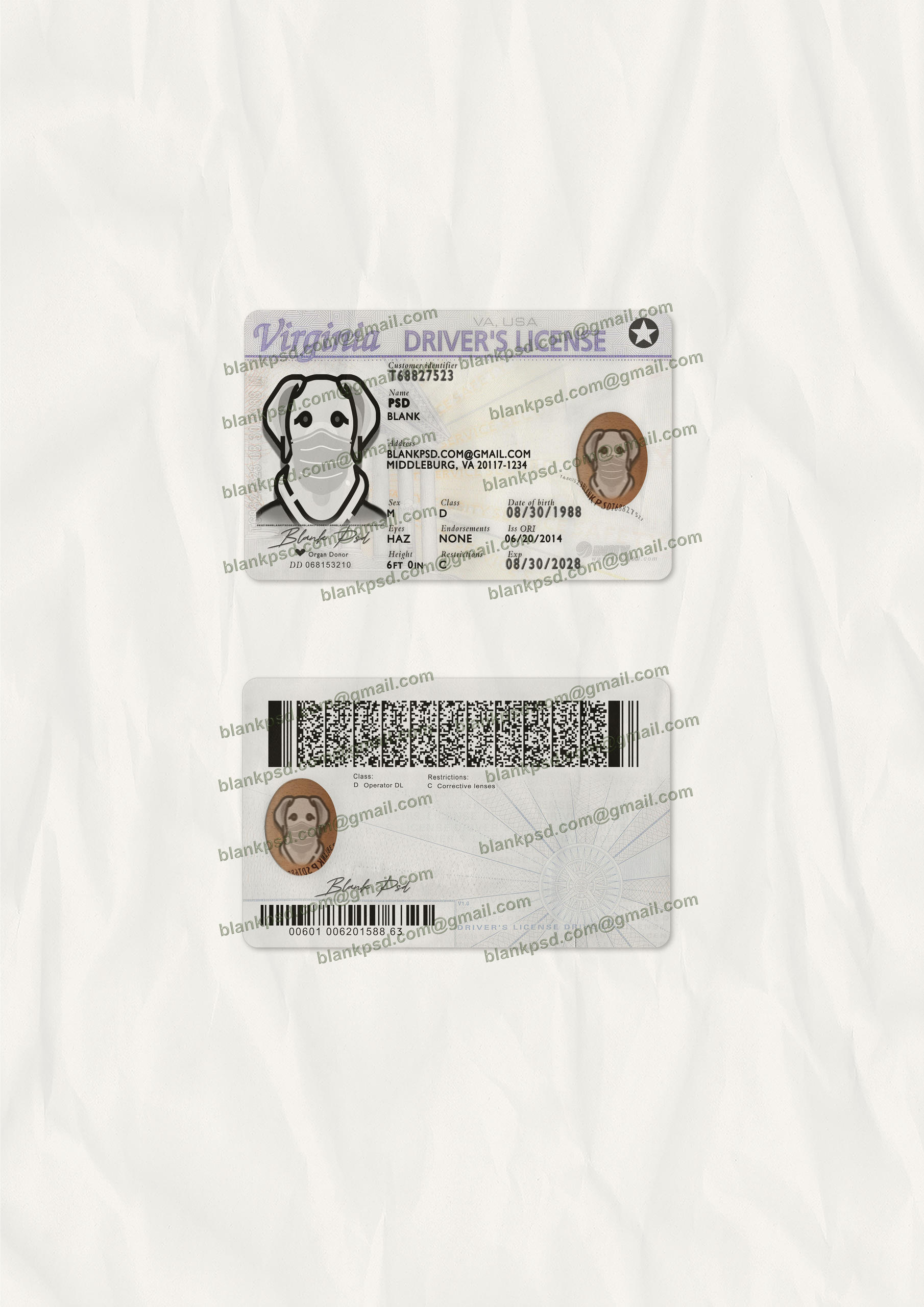 Fake Virginia Drivers License New V2 fully editable photoshop template