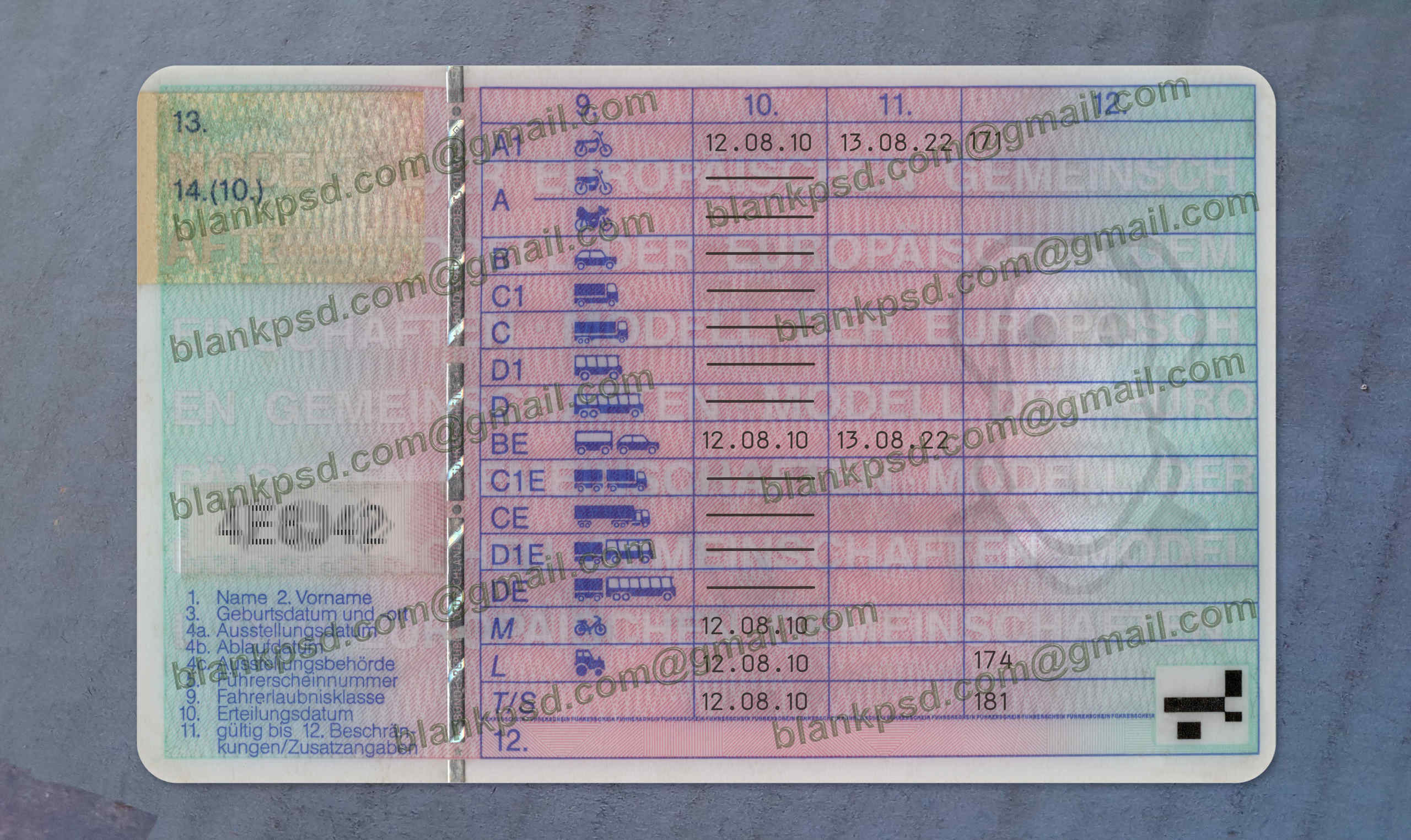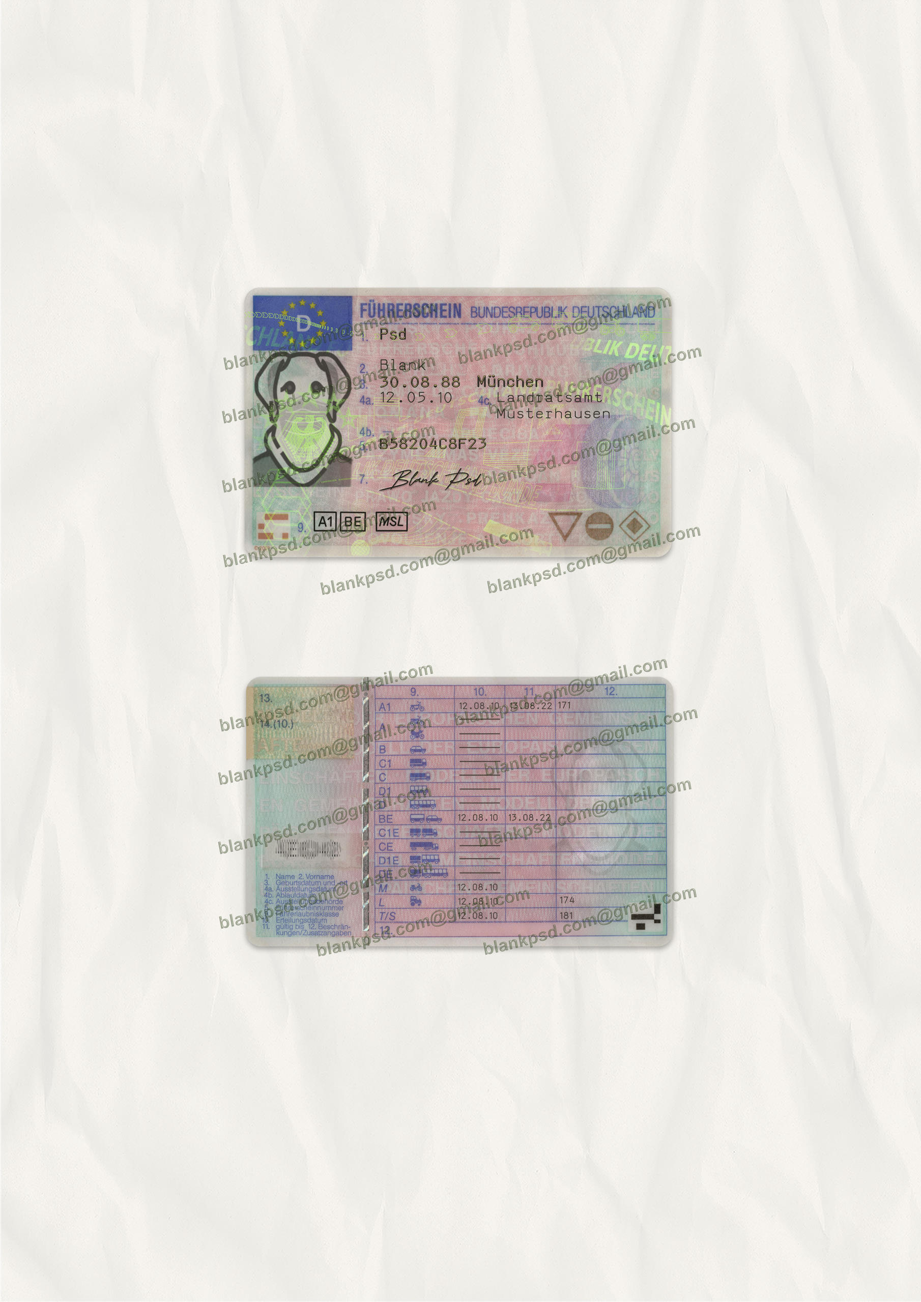 You can edit Blank Germany Driver License and put any : name, address, Id number, expire date, barcode, date of birth, height, weight, expire date, change photos..etc.