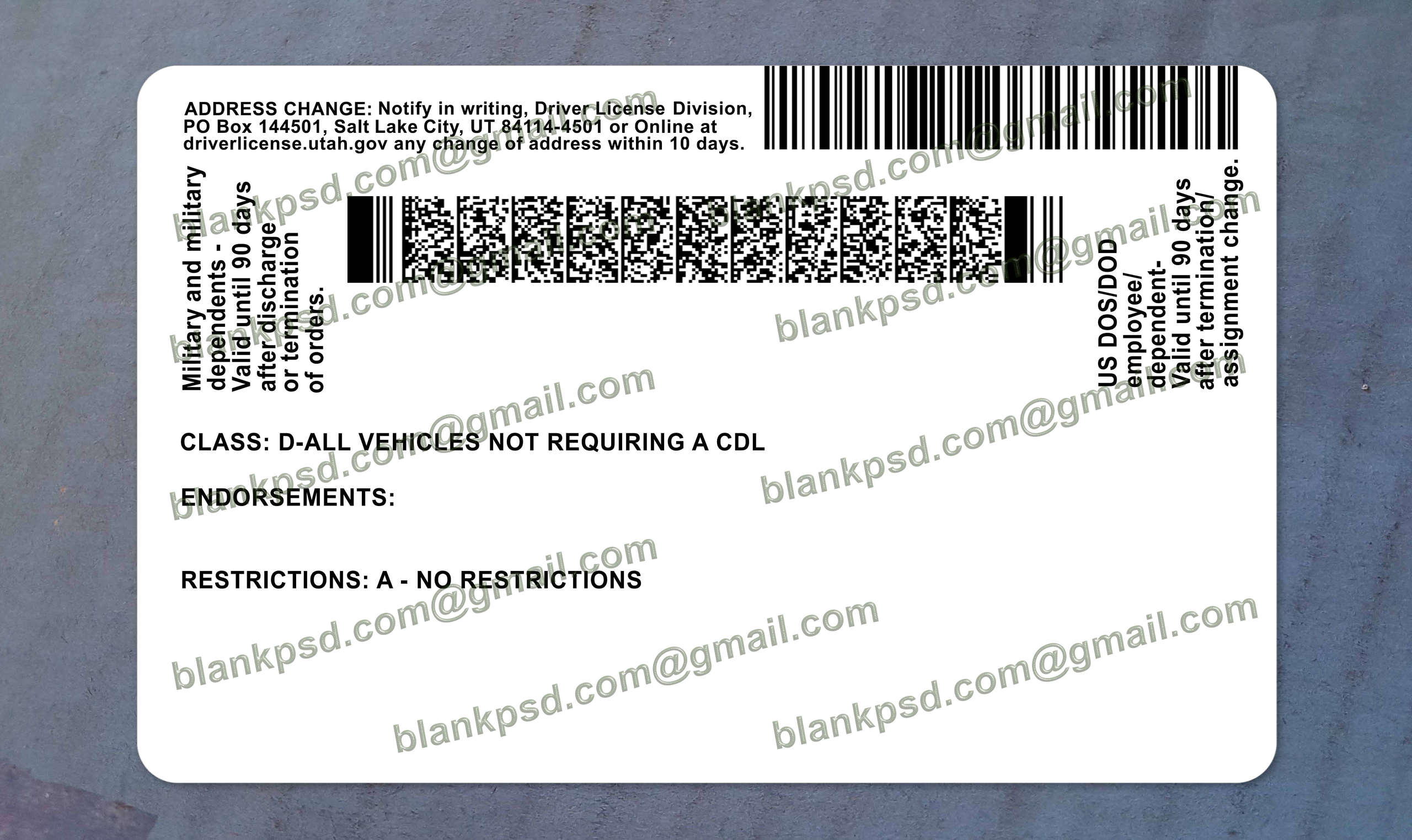 Utah Driving Licence Psd