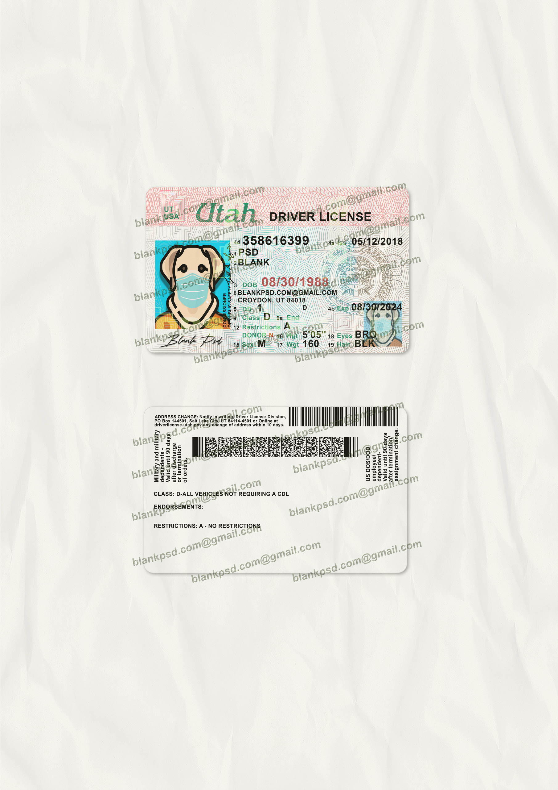 UT Drivers License Template