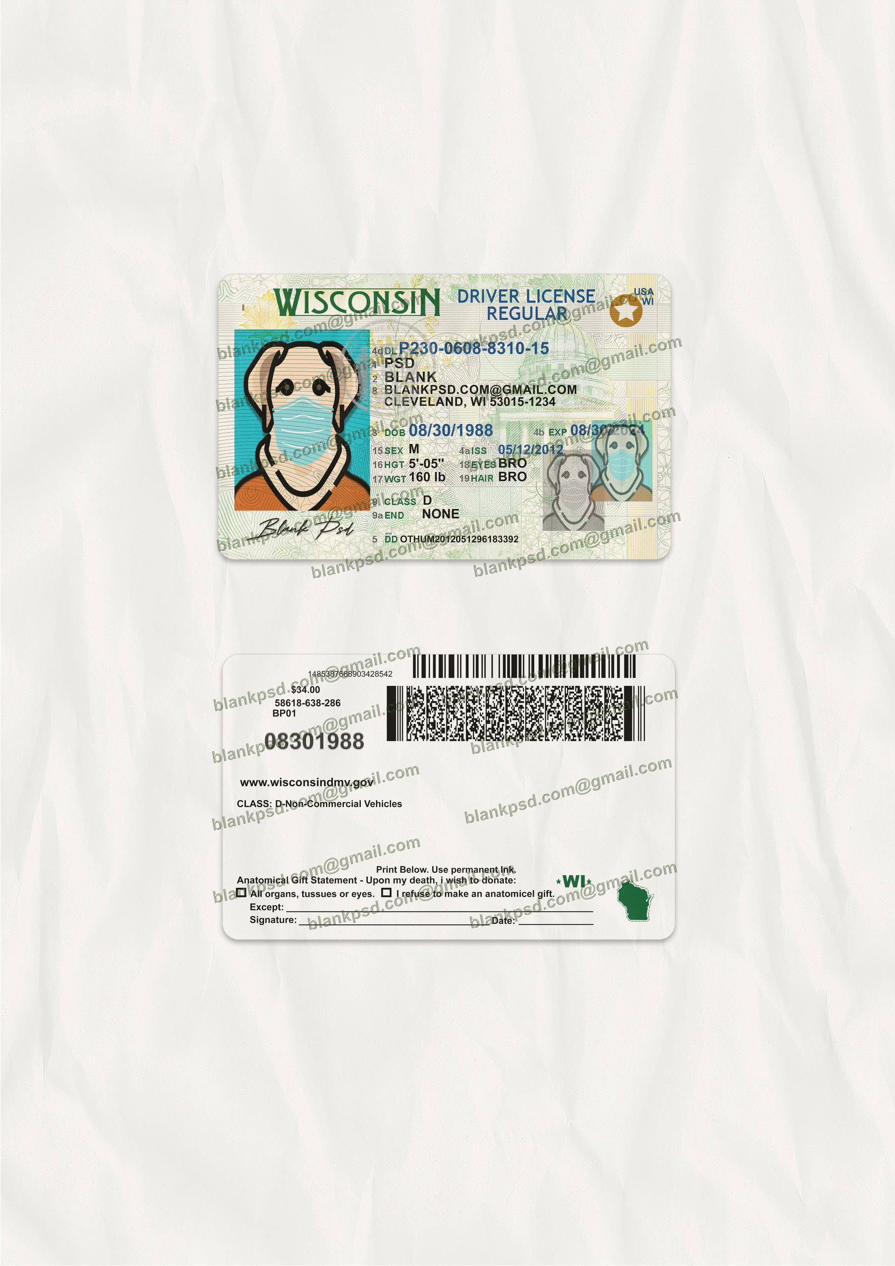 You can edit Wisconsin Drivers License Template and put any : name, address, Id number, expire date, barcode, date of birth, height, weight, expire date, change photos..etc.