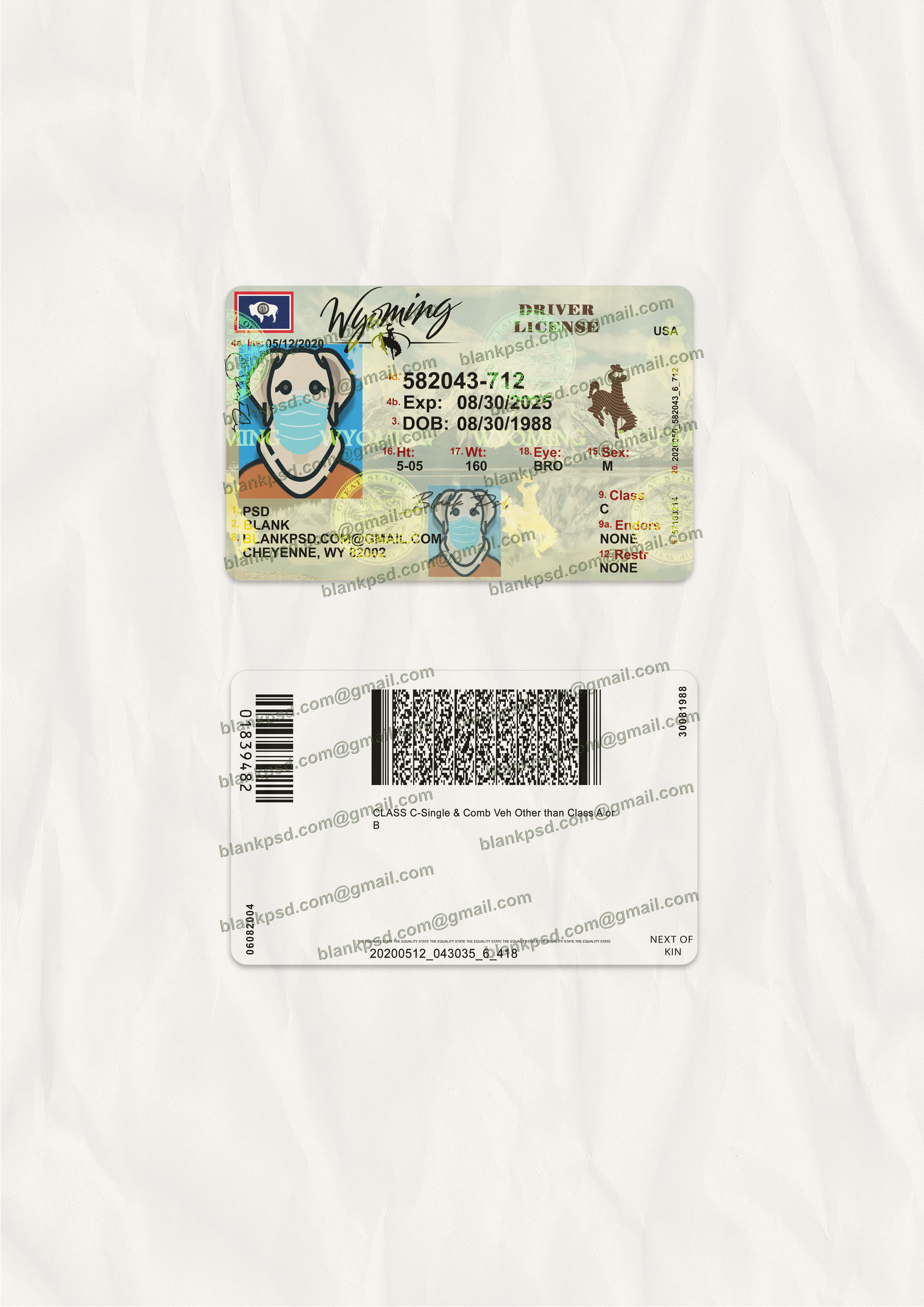 Wyoming Drivers License Template V1 fully editable photoshop template